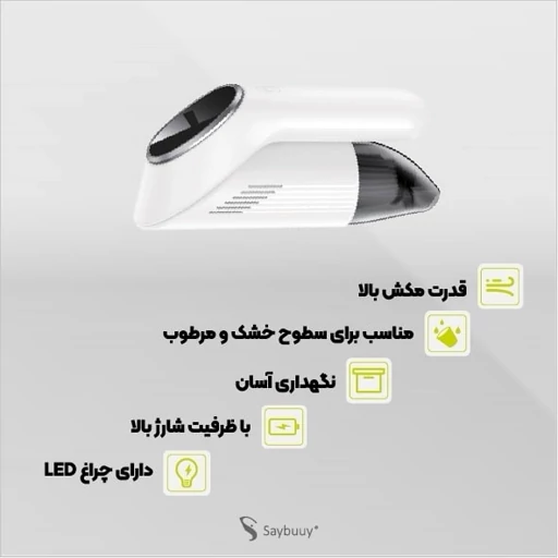 جارو شارژی خودرو سی بای SAYBUUY GV1 با طراحی ارگونومیک و وزن سبک، گزینهای ایدهآل برای تمیز کردن داخل خودرو، منزل و حتی محیط کار است.