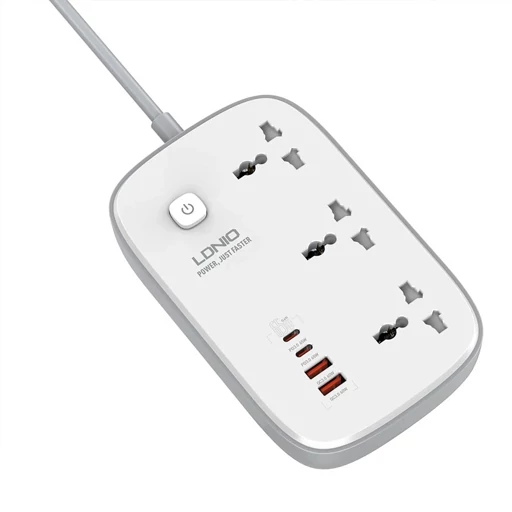 چندراهی برق و شارژر الدینیو مدل SC3416 GaN با ۳ پریز یونیورسال و ۴ پورت USB (شامل ۲ پورت Type-C و ۲ پورت USB-A)، توان خروجی ۶۵ وات و فناوری GaN، گزینهای ایدهآل برای شارژ سریع و همزمان چندین دستگاه در منزل، محل کار یا سفر است.